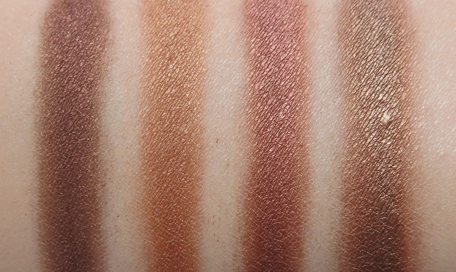 A pigmentáltság ez esetben is hasonló, vagyis mind a négy szín azonnal rendkívül pigmentáltan jelenik meg a szemhéjon is. Jól satírozható színek, amelyek a satírozás hatására sem válnak koszos hatásúvá, és gyönyörűen kiemelik a kék és a zöld szemet, de valószínűleg a barna szeműeknek is jól állhatnak. Bár a csomagolásban mind a négy hasonló árnyalatúnak tűnt, leginkább a Mario NYC és a Cargo Rustic hasonlít egymásra, hiszen a Kim és a Muse sokkal melegebb árnyalat. A Cargo Rustic még kicsit pigmentáltabb is, mint az ABH NYC, és nem elhanyagolható előnye, hogy ahogyan a színmintánál is látható, az elsatírozott széleken melegebb árnyalatúnak tűnik. Ez azért fontos, mert sietős reggeleken remek választást jelenthet: egymagában is kidolgozott szemsmink hatását kelti, ha ezt választjuk füstös smink elkészítéséhez.